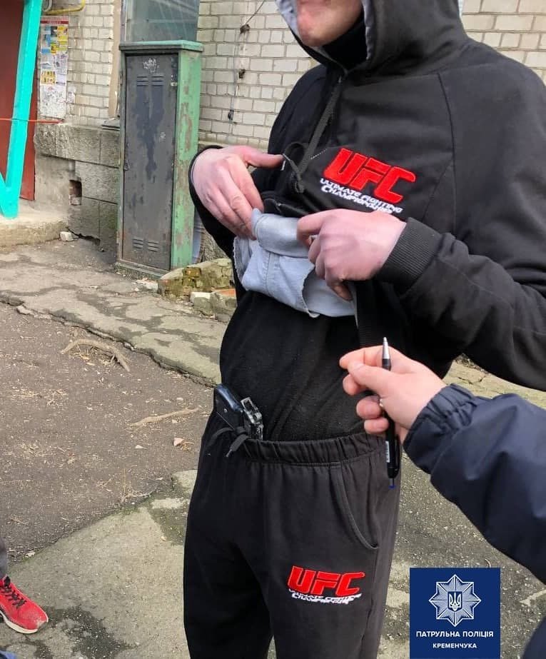 У кременчужанина, який розпивав спиртне посеред вулиці, знайшли пістолет у штанях. Як повідомляє патрульна поліція Кременчука, це сталося 22 березня близько 13.00 на вул. Володимира Великого.