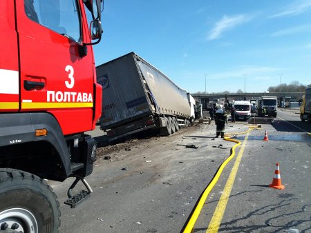 26 березня о 10.22 на автодорозі Полтава-Харків поблизу с. Нижні Млини Полтавського району сталася дорожньо-транспортна пригода. Як повідомляє пресслужба ДСНС області, зіткнулися Lexus та фура DAF.