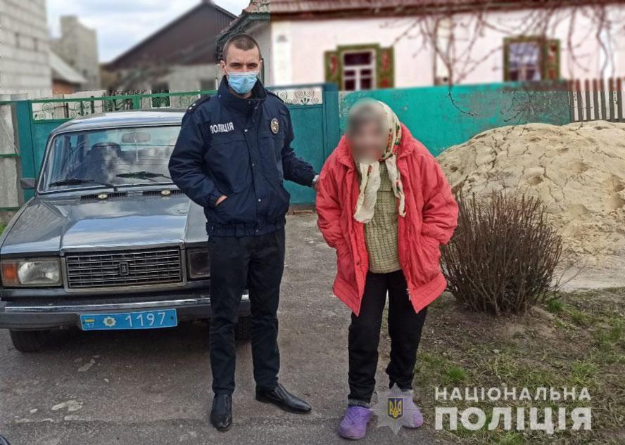 Вона пішла з дому ще 8 квітня та пройшла майже 7 кілометрів, дійшовши до сусіднього села. Наразі жінку передали родичу. Загрози її життю та здоров’ю немає.