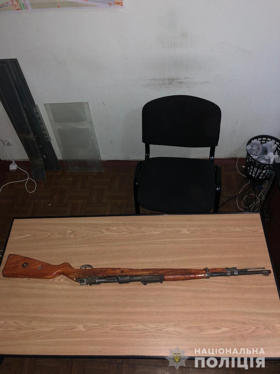 Під час санкціонованого обшуку працівники карного розшуку знайшли в помешканні фігуранта зброю та боєприпаси. Поліцейські вилучили автомат ПМ-40, штик-ніж, піхотний кулемет Дегтярьова, гвинтівку Мосіна, гвинтівку зі штик-ножем, холодну зброю, патрони, наркотики рослинного походження та мундштук зі скляною колбою. Усі вилучені предмети направлені на експертизу. Чоловіка затримали в порядку статті 208 Кримінального процесуального кодексу України та заарештували.