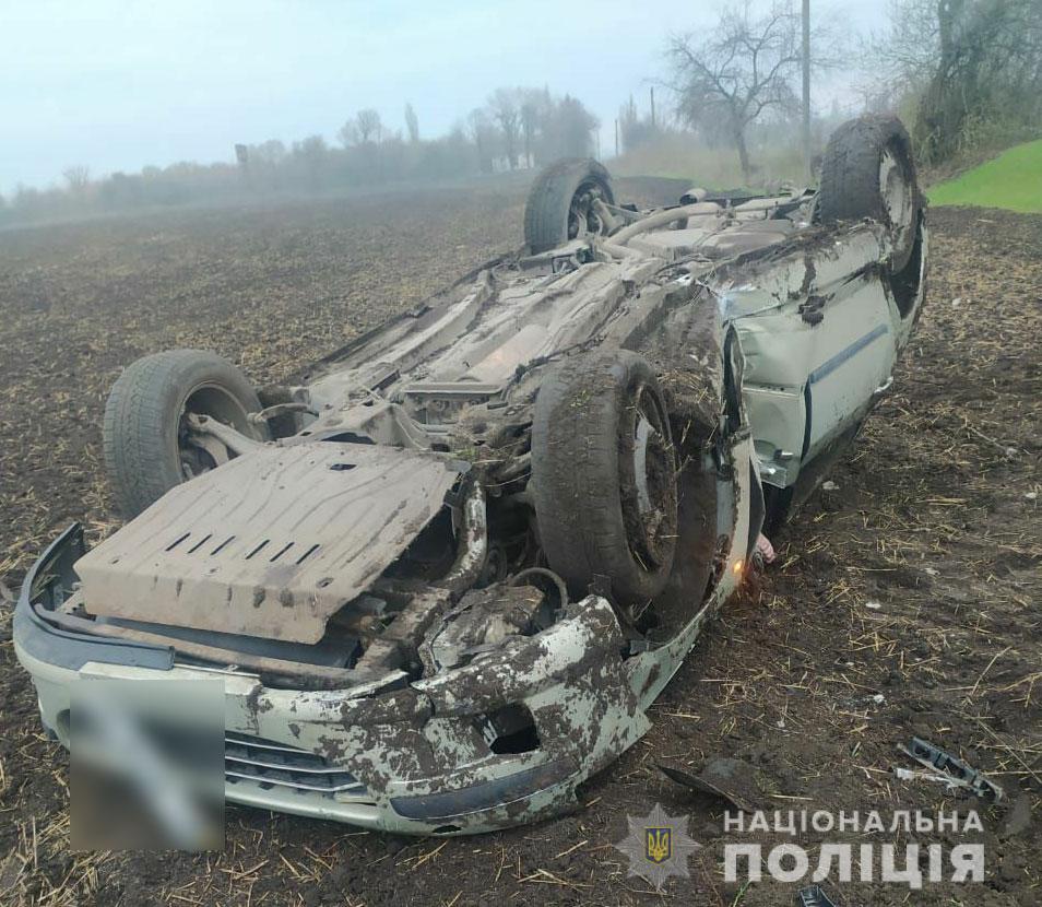 За попередньою інформацією, 24-річний водій не впорався з керуванням, виїхав на зустрічну смугу, збив бетонну електроопору та в подальшому злетів на поле, де автівка Peugeot 407 перекинулася на дах.