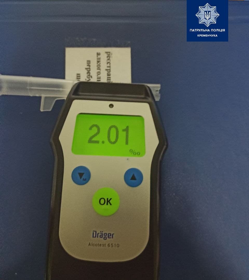 Охоронці порядку зупинили автомобіль BMW 520 на вулиці Шевченка, оскільки він рухався з технічною несправністю. Під час спілкування з керманичем інспектори помітили у нього ознаки алкогольного сп'яніння. Алкотестер «Драгер» показав результат — 2,01 ‰, що майже у 10 разів перевищує допустиму норму.