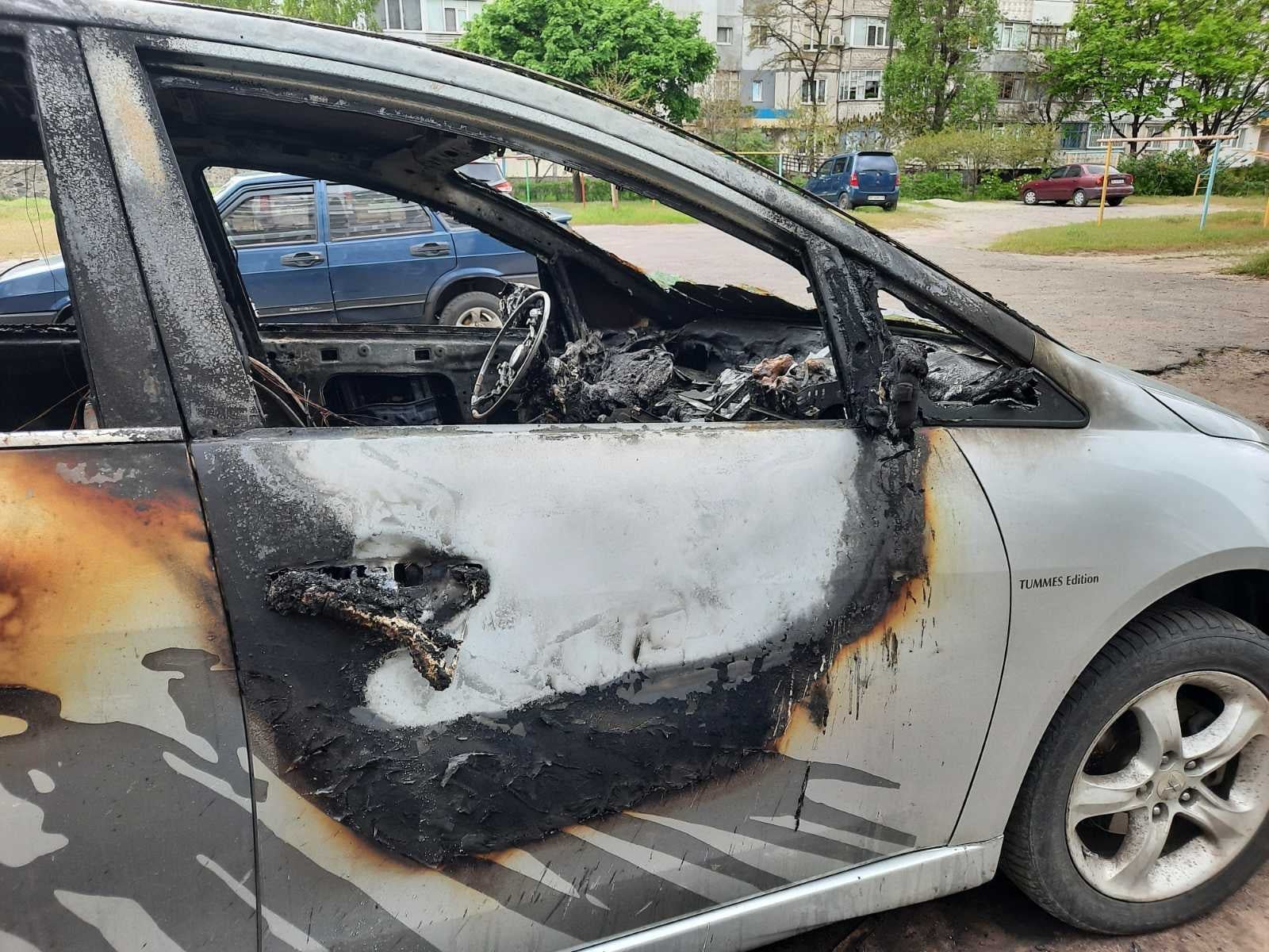 Легкова автівка Mitsubishi Grandis, що була припаркована на вул. Добровольського у Горішніх Плавнях, згоріла майже повністю. За інформацією Головного управління ДСНС України у Полтавській області, пожежа сталася 12 травня о 1.39.