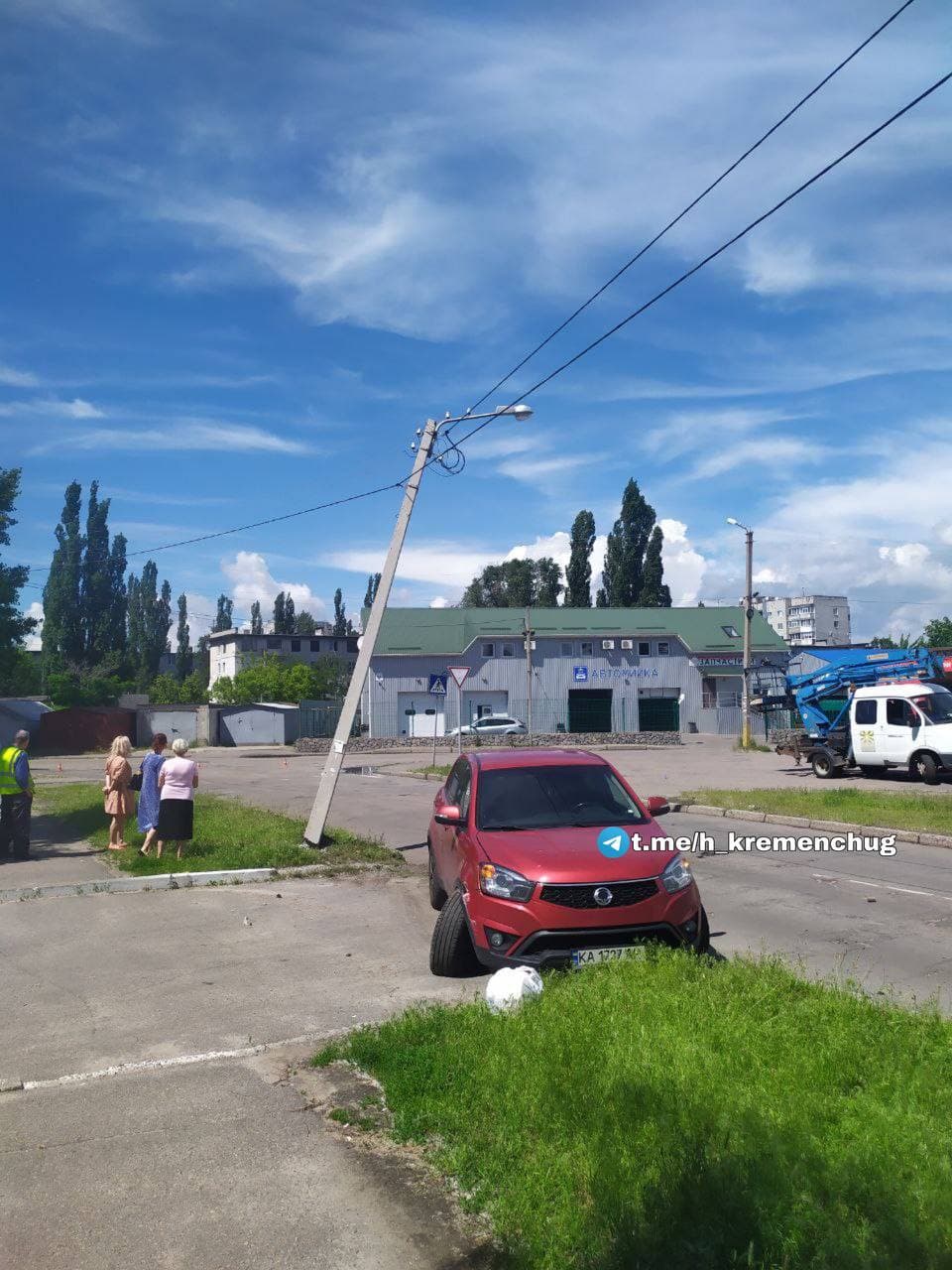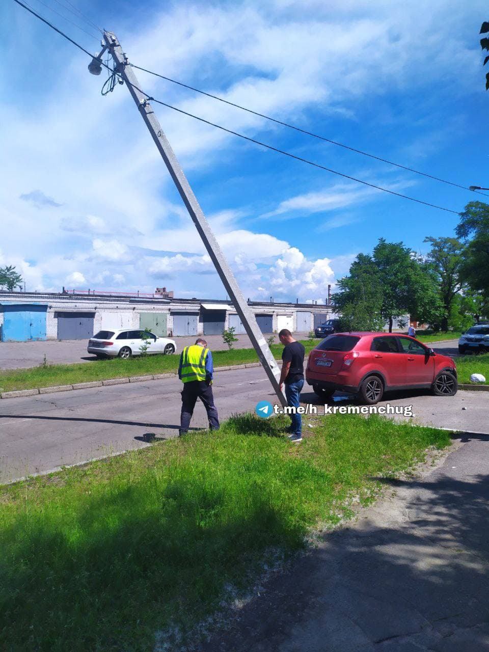 Сьогодні, 12 червня, у провулку Героїв Бреста (район колишньої «Французької булочної») автомобіль Korando збив електроопору. Світлини очевидці виклали у соцмережах.