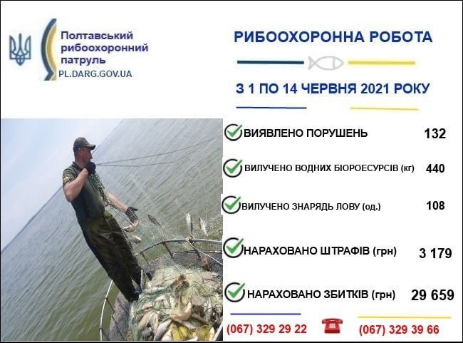 Якщо Ви помітили порушення Правил рибальства або Порядку придбання чи збуту водних біоресурсів просимо невідкладно повідомляти на «гарячу лінію» за номерами: (067) 329-29-22 та (067) 329-39-66.