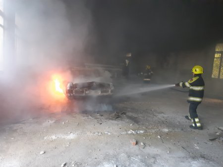 О 19.40 рятувальники отримали виклик про пожежу, через 15 хвилин прибули на місце і за 20 хвилин загасили полум'я. Вогонь знищив кузов розібраного автомобіля «Волга».