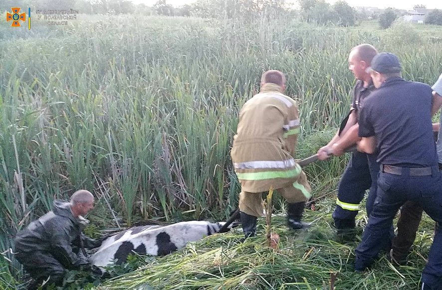 28 червня о 20.45 до Служби порятунку «101» надійшло повідомлення про корову, яка загрузла в болоті на вул. Бочанській в смт Чутове та не може самостійно вибратися.