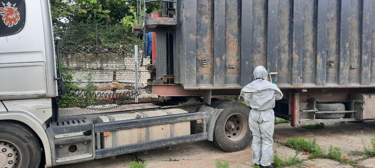 Автомобіль Scania прибув до порту з Полтави з вантажем металобрухту. Після спрацювання комплексу «Янтар» прикордонники додатково перевірили вантажівку приладами радіаційного контролю та встановили, що радіаційний фон металобрухту у 5 разів перевищує допустиму норму.