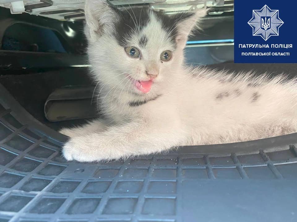 У Полтаві правоохоронці врятували кошеня з автівки, яку зупинили за порушення правил дорожнього руху. Про це повідомляє патрульна поліція області.