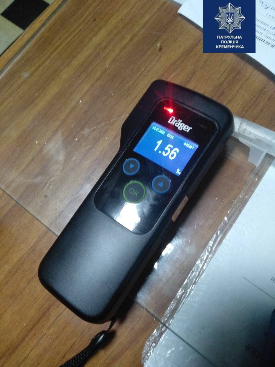 Під час встановлення усіх обставин поліцейські помітили у 64-річного керманича ознаки алкогольного сп’яніння. Алкотестер «Драгер» показав результат — 1,56 ‰, що майже у 8 разів перевищує допустиму норму.