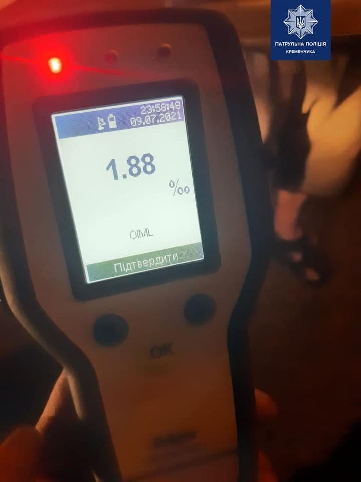 10 липня патрульні отримали повідомлення про те, що водій автомобіль Mitsubishi перебуває за кермом у стані алкогольного сп’яніння. Інспектори знайшли та зупинили автівку на вул. Вадима Пугачова. Під час спілкування із 49-річним керманичем поліцейські відчули різкий запах алкоголю. Алкотестер підтвердив підозри копів — 1,88‰ алкоголю у крові, що майже у 9 разів перевищує допустиму норму.