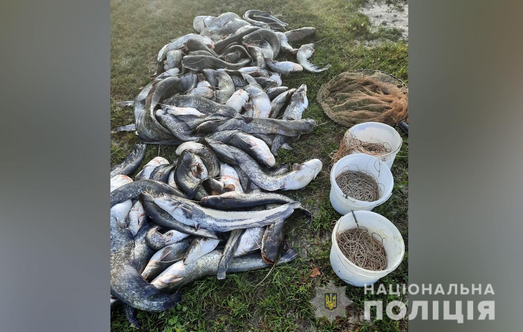 У гумовому човні з навісним двигуном було близько 120 кілограмів свіжовиловленої риби та 600 метрів сіток з півсотнею металевих гачків.