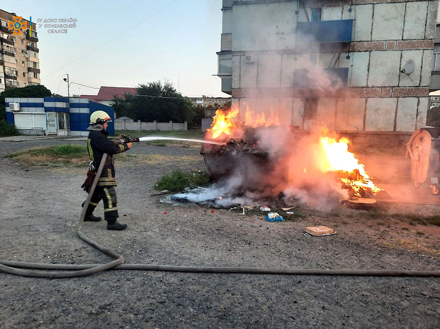 9 серпня о 5.32 на пр. Героїв Дніпра у Горішніх Плавнях загорівся сміттєвий бак.
