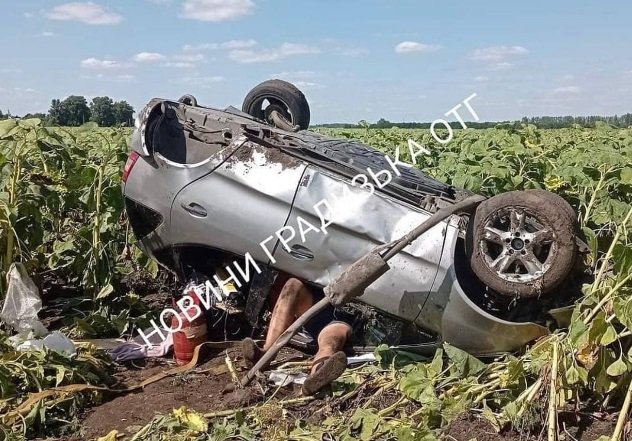 За попередньою інформацією, ДТП трапилась через невдалу спробу водія здійснити обгін. Він не справився з керуванням. Як наслідок – транспортний засіб опинився серед поля соняхів.