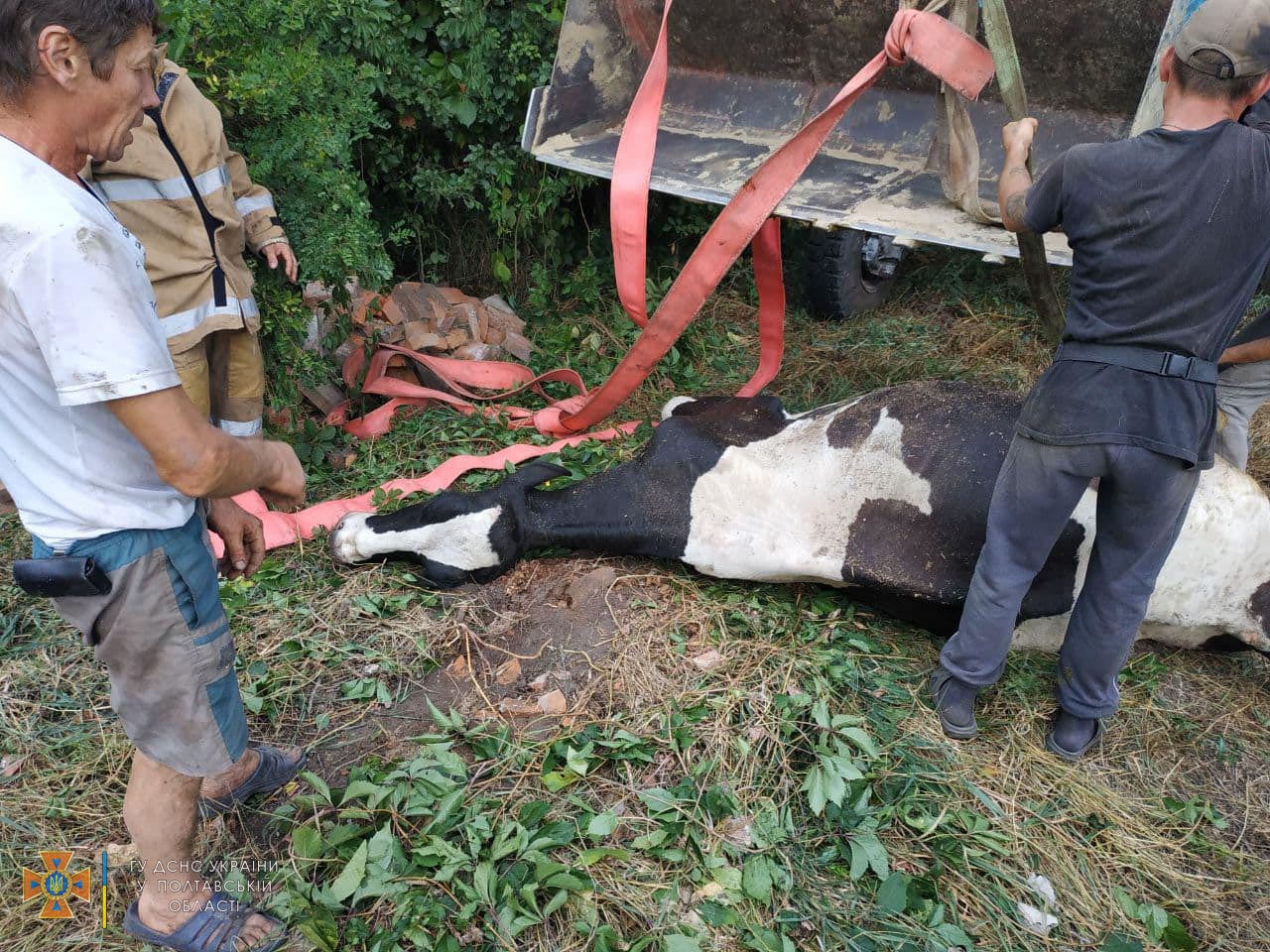 19 серпня о 15.40 до служби порятунку «101» надійшло повідомлення про те, що на вул. Пархомівській у селі Чернещина Полтавського району у відкритий льох провалилася корова. Про це інформує ГУ ДСНС України у Полтавській області.