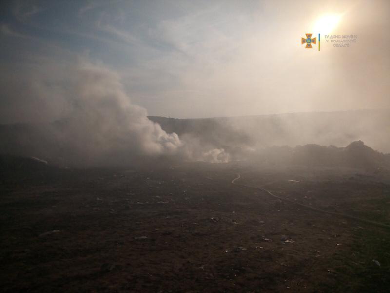 Як повідомили в Кременчуцькому районному управлінні ДСНС, горіло звалище твердих побутових відходів. Вогонь знищив 0,4 га сміття.