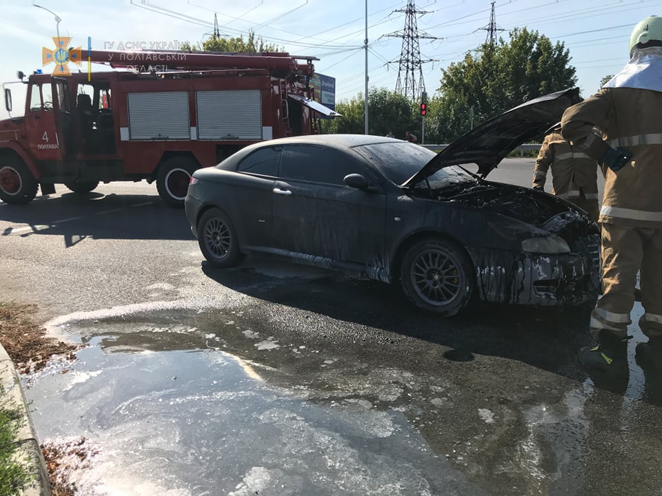 12 вересня у Полтаві на ходу загорілася автівка. Як поінформувало ГУ ДСНС України у Полтавській області, о 10.09 до служби порятунку «101» надійшло повідомлення про пожежу в автомобілі Alfa Romeo на перехресті вулиць Київське Шосе та Великотирнівська.