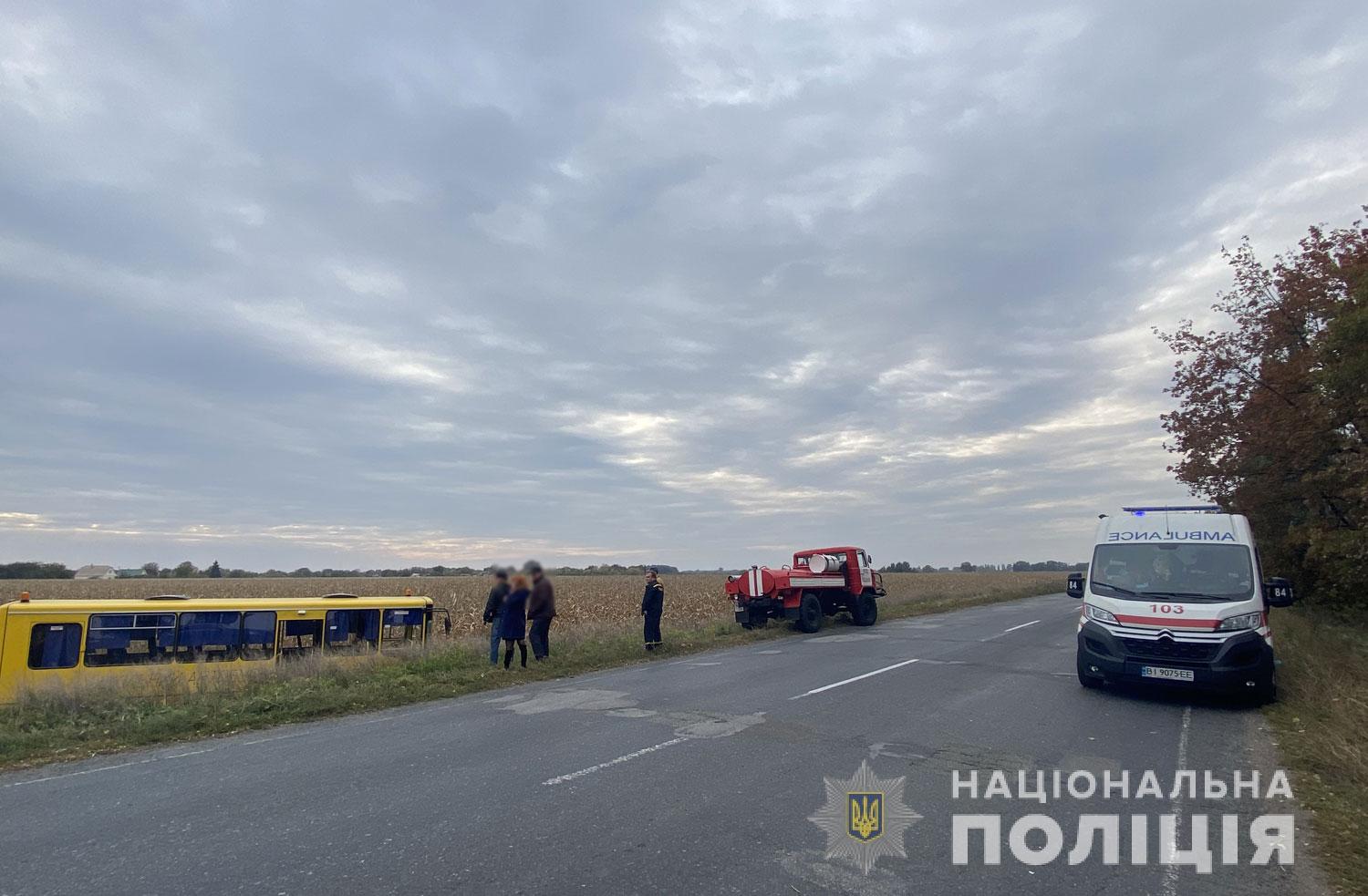 Сьогодні, 8 жовтня, близько 15.20 поблизу села Ялинці Кременчуцького району у кювет злетів шкільний автобус. Про це сповістило Кременчуцьке районне управління поліції. На місце події виїжджали поліцейські, медики та рятувальники. На щастя, у ДТП ніхто не постраждав.