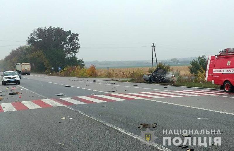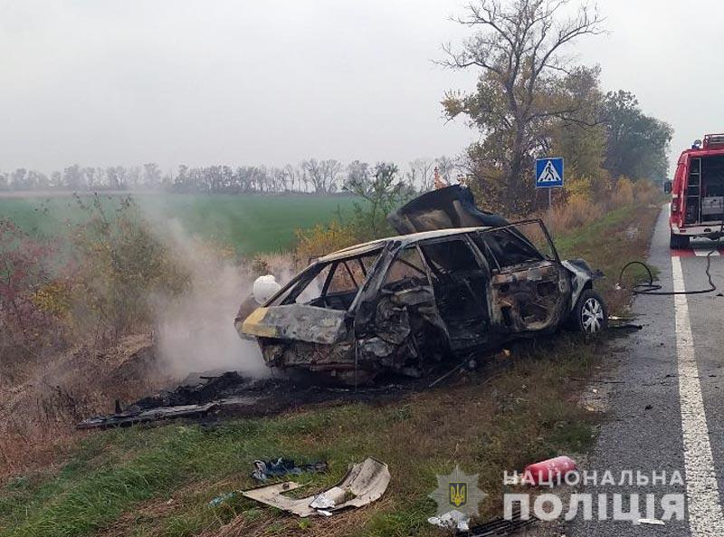 Як повідомили у пресслужбі поліції, 55-річний водій АЗЛК 21412 зіткнувся з вантажівкою DAF, за кермом якої перебував 28-річний кременчужанин. Після зіткнення автомобіль «Москвич» загорівся.