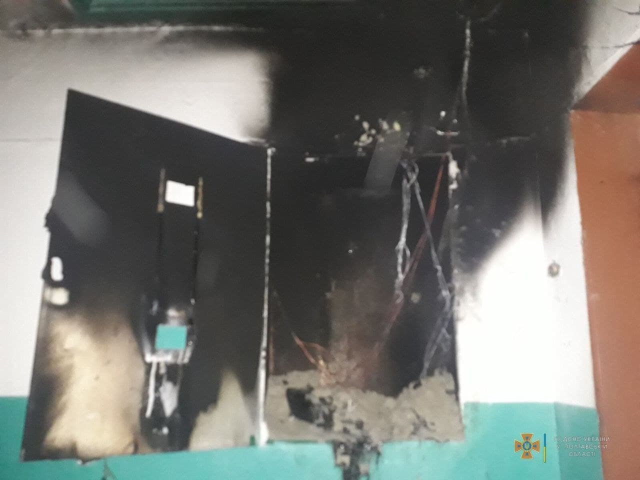 Згоріли два електричних лічильника квартири №9, №10, близько 15 м погоних електропроводів. Закопчені стіни та стеля на площі 5 кв м.