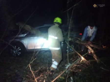 Як повідомили у пресслужбі ДСНС, 2 з 4 постраждалих затисло в автівці. Рятувальники за допомогою бензопили звільнили автомобіль від гілки дерева та деблокували постраждалих і передали їх медикам.