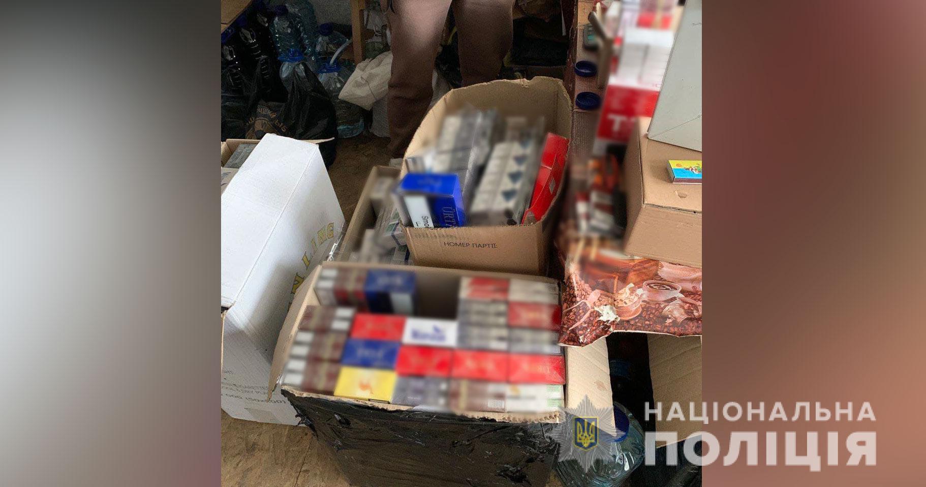 Під час документування правопорушення поліція вилучила понад 1 300 пачок цигарок та більше ніж 200 л алкоголю без маркування на 57,5 тисяч гривень.