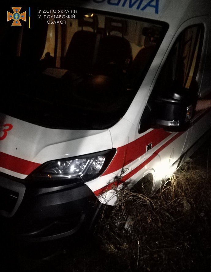 В ніч на 13 грудня поблизу с. Овсюки Лубенського району автомобіль швидкої допомоги під час розвороту провалився передньою віссю у відчинений водопровідний люк. О 00.48 медики звернулися за допомогою до рятувальників.