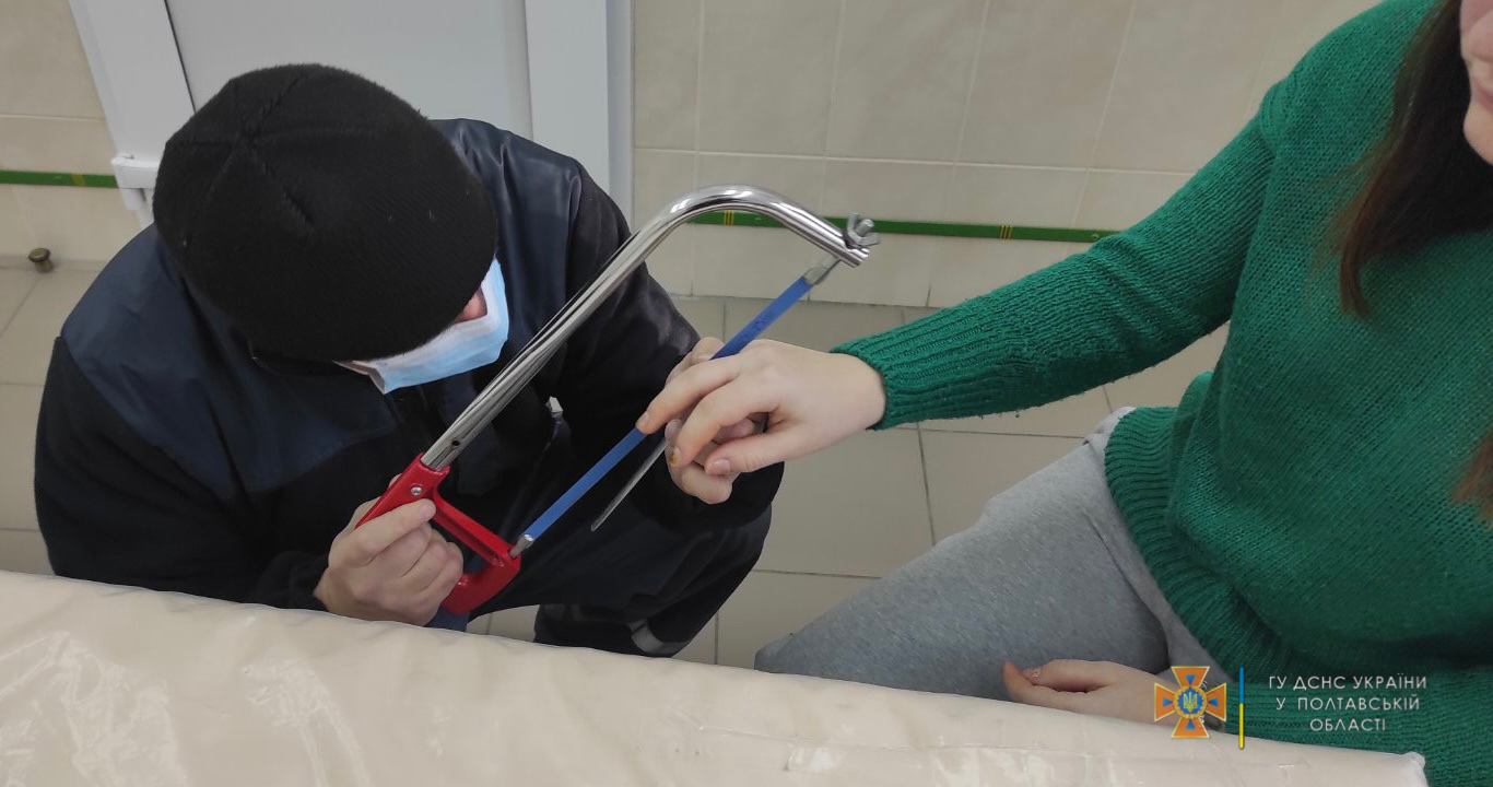 Об 11.50 до служби порятунку «101» надійшло повідомлення від лікаря-травматолога Кременчуцької дитячої міської лікарні про те, що у дівчинки на пальці застрягла каблучка, і через набряк вона її самостійно зняти не може.