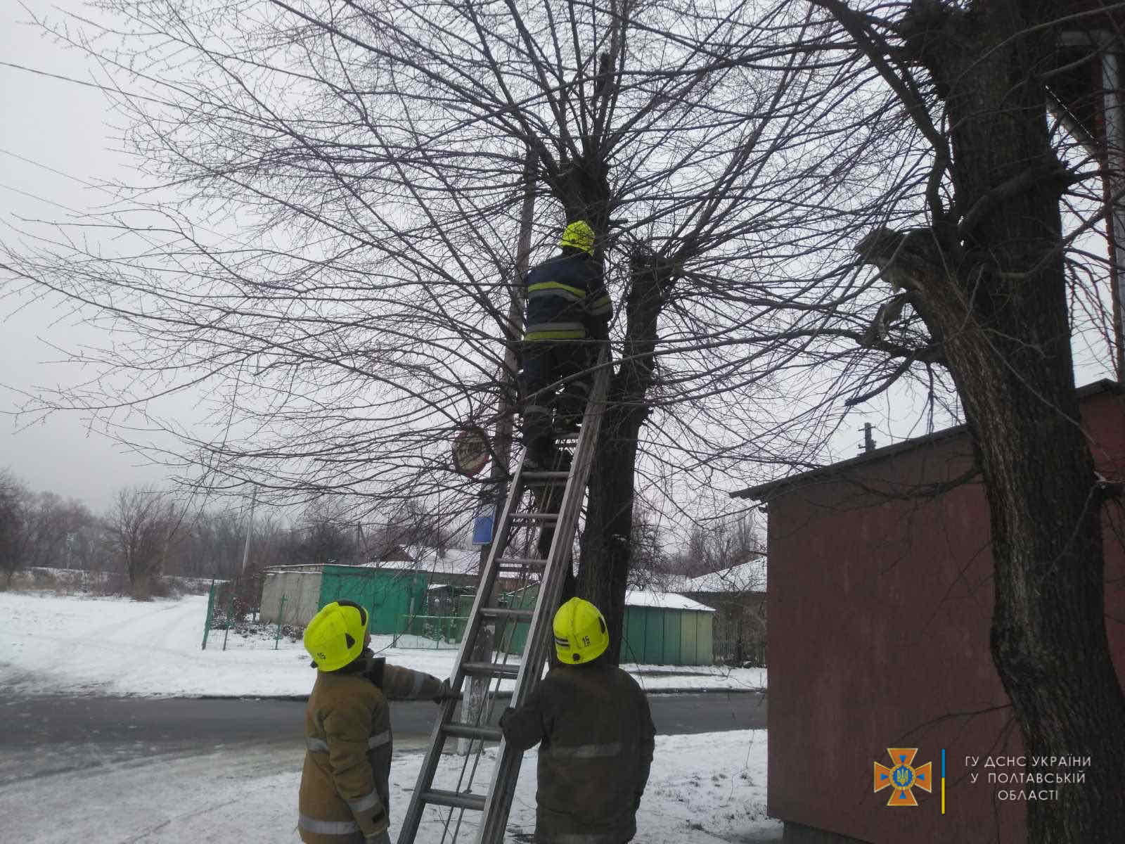 Надзвичайники за допомогою трьохколінної драбини зняли пухнастика з дерева.