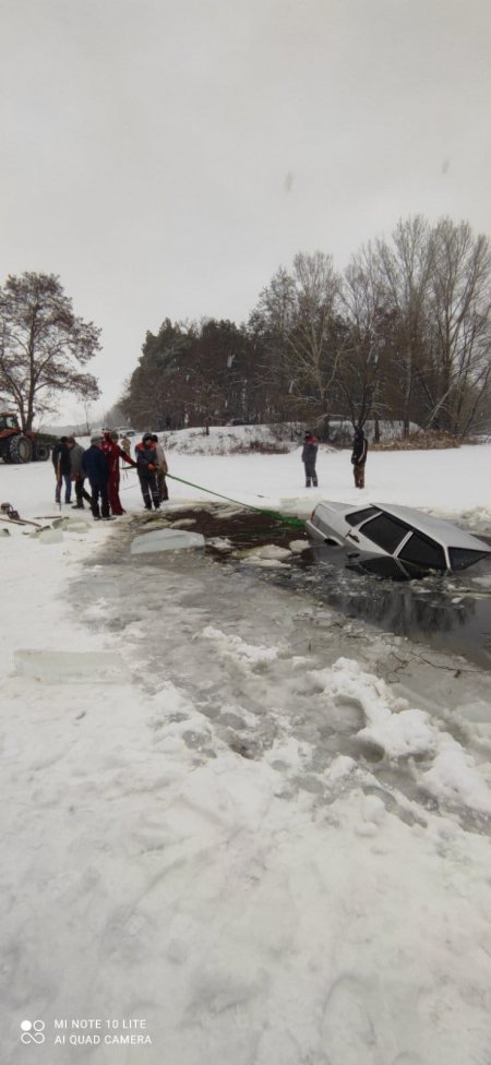 Автомобіль «пішов» під кригу за 20 метрів від берега. 40-річний водій встиг самостійно вилізти а автівки та дістатися берега до її занурення у воду.