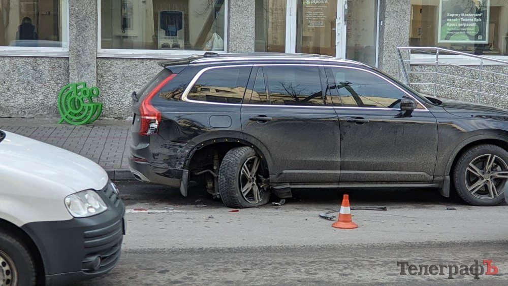 Машину повело і вона влетіла в припарковані біля банку автівки. Найбільше не пощастило Volvo, у якого вирвало заднє колесо. Ще у однієї автівки вивернуло праве колесо, а інша – лишилась без дзеркала.