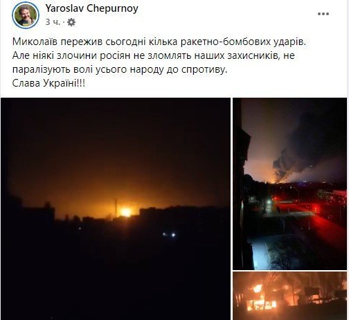«Миколаїв пережив сьогодні кілька ракетно-бомбових ударів. Але ніякі злочини росіян не зломлять наших захисників, не паралізують волі усього народу до спротиву.
