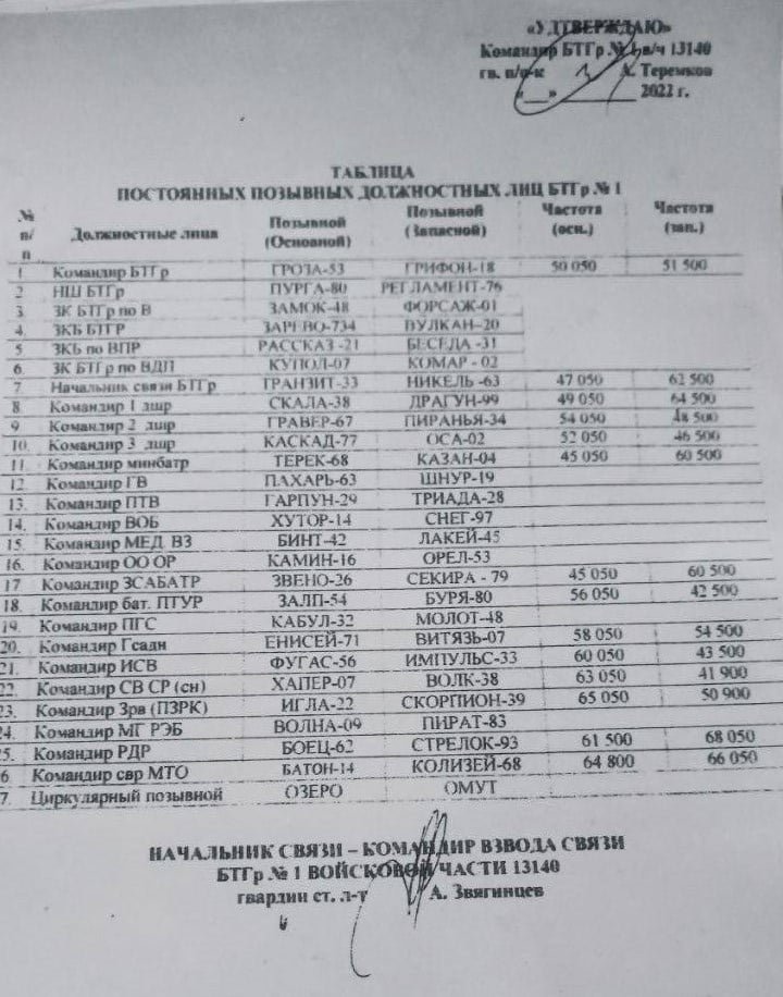 Серед отриманих документів робоча карта, бойове завдання, таблиця позивних, таблиці сигналів управління, таблиці скритого управління, список особового складу тощо.