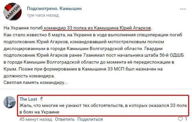 За інформацією з некрологів, які вже публікуються у російських ЗМІ та соціальних мережах, на території нашої держави він був не один, а з усім своїм полком. Полк теж зазнав важких втрат.