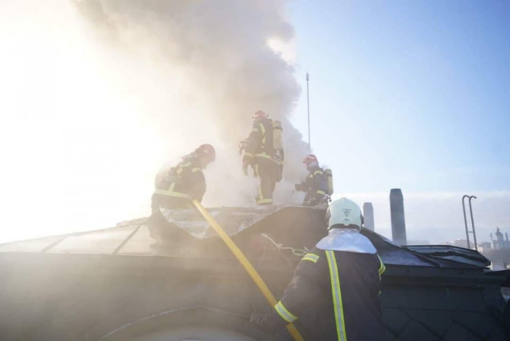 Радник міністра внутрішніх справ Антон Геращенко повідомив, що близько 6.17 у Києві збили безпілотний літальний апарат пожежу, через що виникла пожежа у 4-поверховій будівлі «Ощадбанку» на вул. Хорива, що у Подільському районі столиці. О 7.34 пожежу локалізовано на площі 50 кв. м та о 8.34 - ліквідовано. Жертв та постраждалих немає.