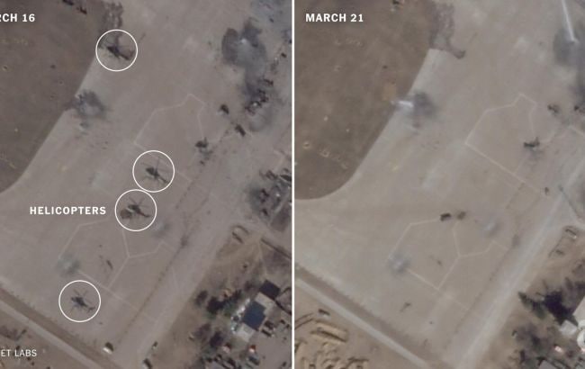 Аналіз нових супутникових знімків аеродрому в Херсоні, також відомого як Чорнобаївка, показав, що на ньому більше немає військових вертольотів орди.
