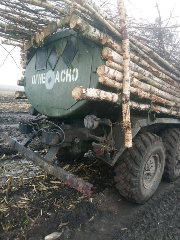 У Чернігівській області наші воїни розбили російську колону, яка вирішила... прикинутися дровами :)