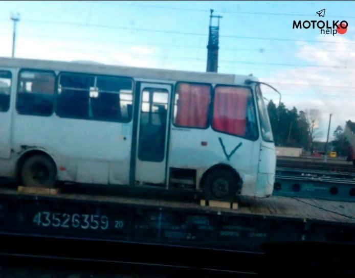 Маршрутку прикріпили до залізничної платформи у складі ешелону військ, що рухалися в напрямку білорусько-російського кордону.
