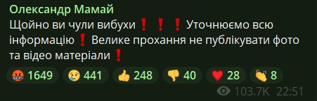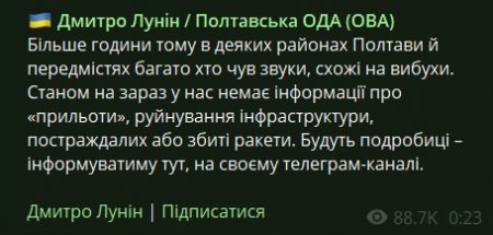У той же час очільник Полтавської ОВА Дмитро Лунін запевнив, що жодної інформації про «прильоти» чи руйнування інфраструктури немає.