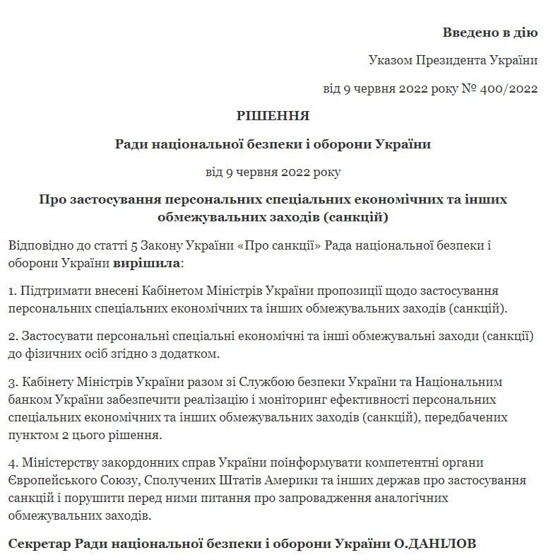 Президент України Володимир Зеленський підписав указ про санкції стосовно перших осіб РФ: