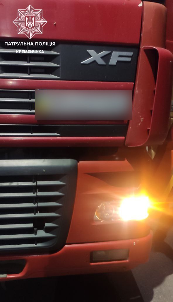 Учора, 13 червня, близько 23.00 на проспекті Лесі Українки охоронці порядку зупинили вантажний автомобіль DAF XF з напівпричепом SCHMITZ за порушення вимоги заборонного знаку.