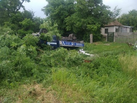 У результаті вантажівка злетіла на узбіччя та перекинулась. Ніхто не постраждав. На місці працює поліція, яка встановлює обставини пригоди.