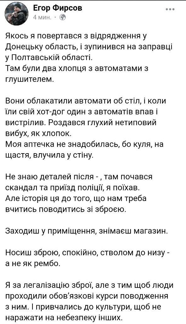 Після голосування українців стосовно легалізації зброї – багато публічних людей виказало свою думку стосовно цього. Історія, яка трапилась на Полтавщині з Євгеном Фірсовим, народним депутатом України – добре ілюструє правильне поводження зі зброєю: