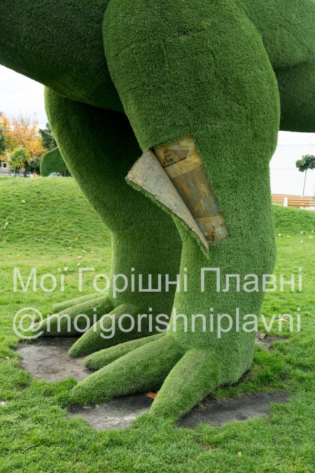 Тиранозавру пошматували ногу, трицератопсу у кількох місцях пробили дірки у хвості, у птеранодона пошматували сідало. У сквері повно відеокамер і з високою ймовірністю винуватця/винуватців встановлять.