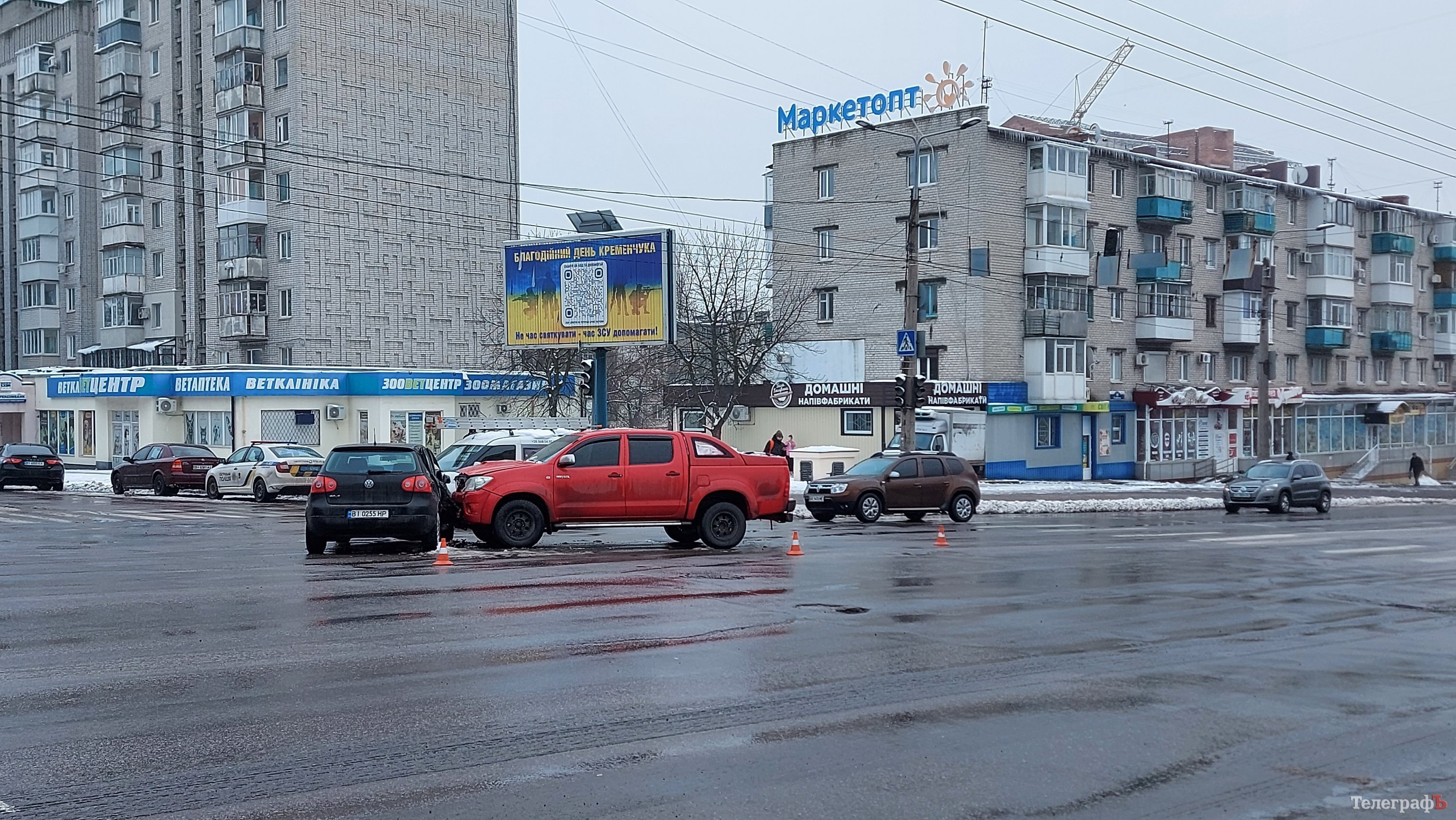 16 грудня сталася аварія на перехресті проспекту Свободи та вулиці Європейської – зіткнулися автомобілі Toyota Hilux та Volkswagen. Через відключення світла на перехресті не працювали світлофори.