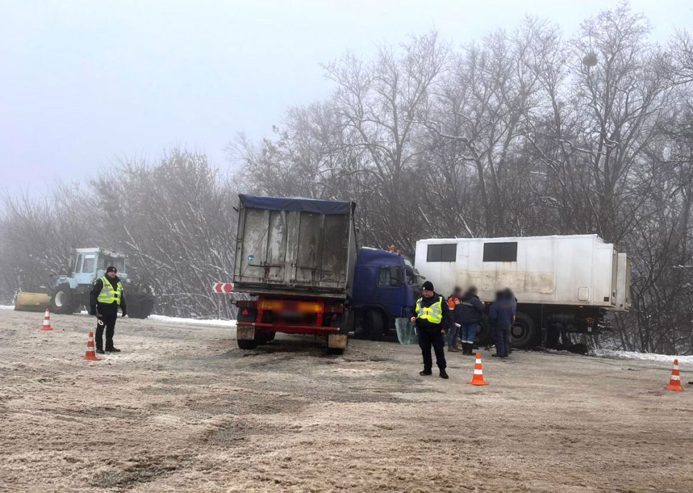 16 грудня близько 10.00 на автодорозі поблизу смт Опішня Полтавського району зіткнулися вантажівки МАЗ та Volvo.
