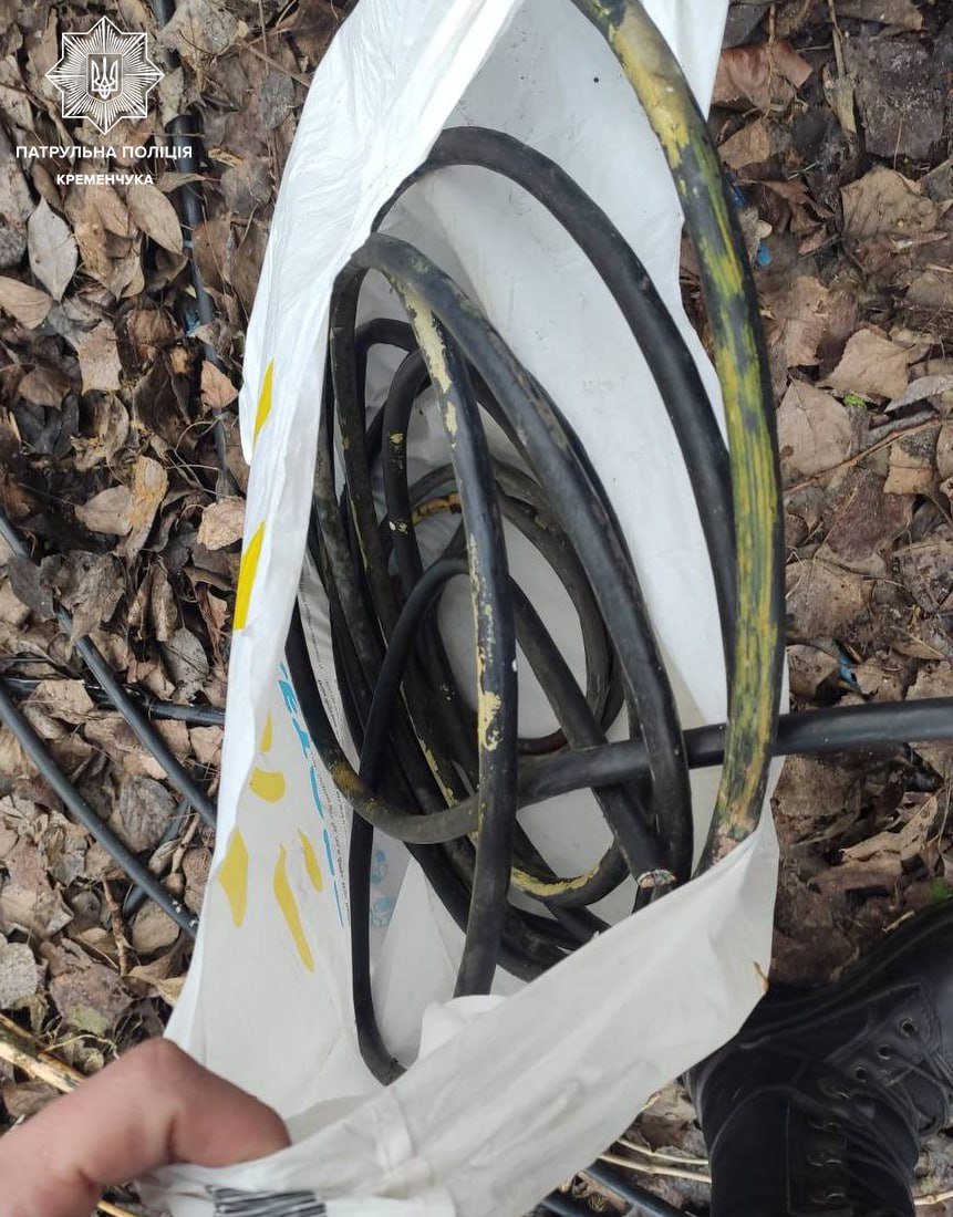 Поліцейські затримали порушника. Ним виявився 47-річний кременчужанин, поряд з яким був пакет з кабельною продукцією.
