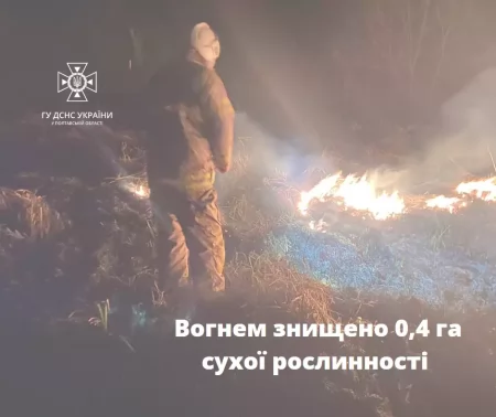 Пожежу ліквідували о 20.20. Згоріло 0,4 га сухої рослинності. До гасіння залучився державний пожежно-рятувального посту.