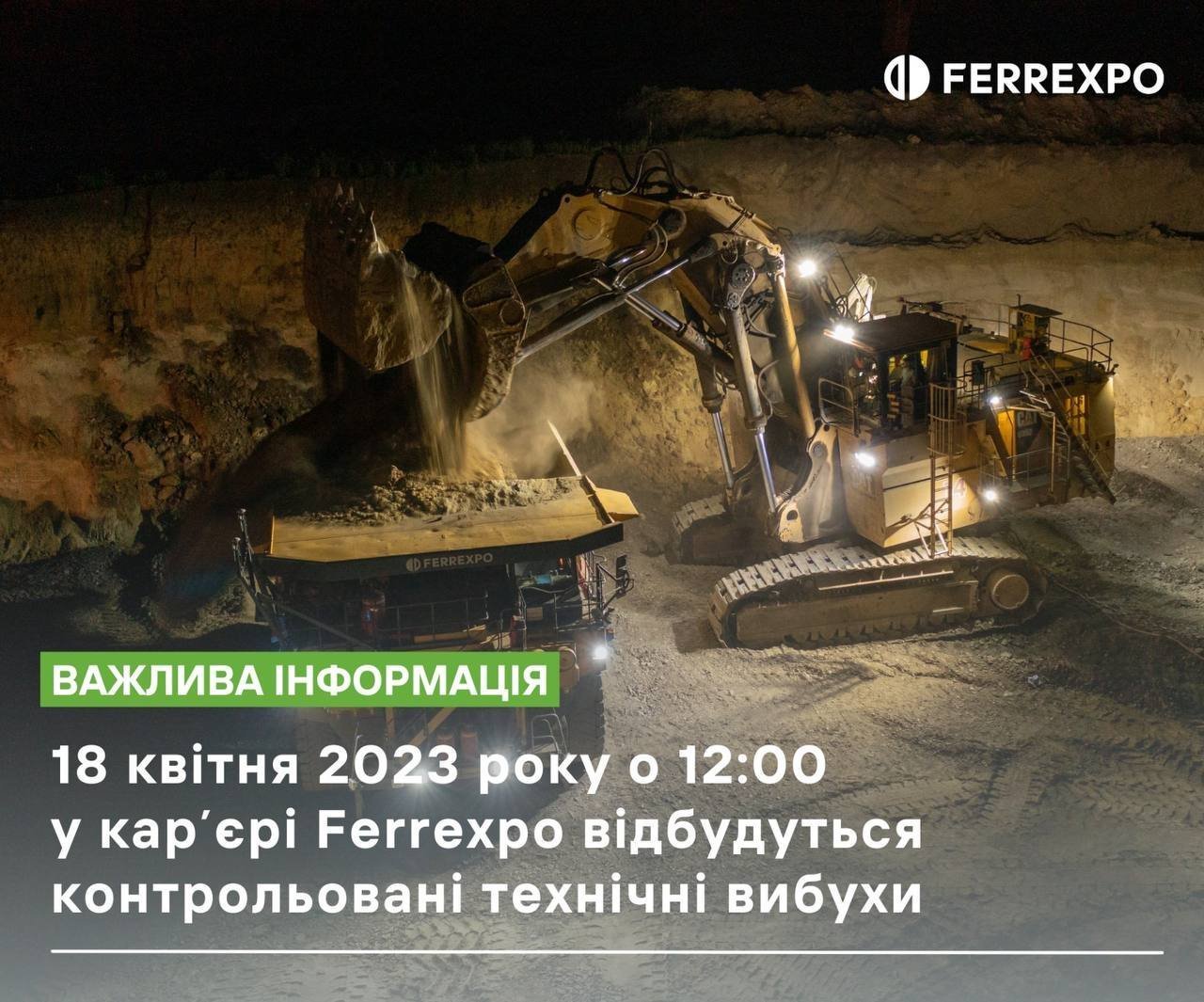 Сьогодні, 18 квітня, о 12.00, у кар’єрі Ferrexpo відбудуться планові технічні вибухи. Про це повідомили у Ferrexpo.