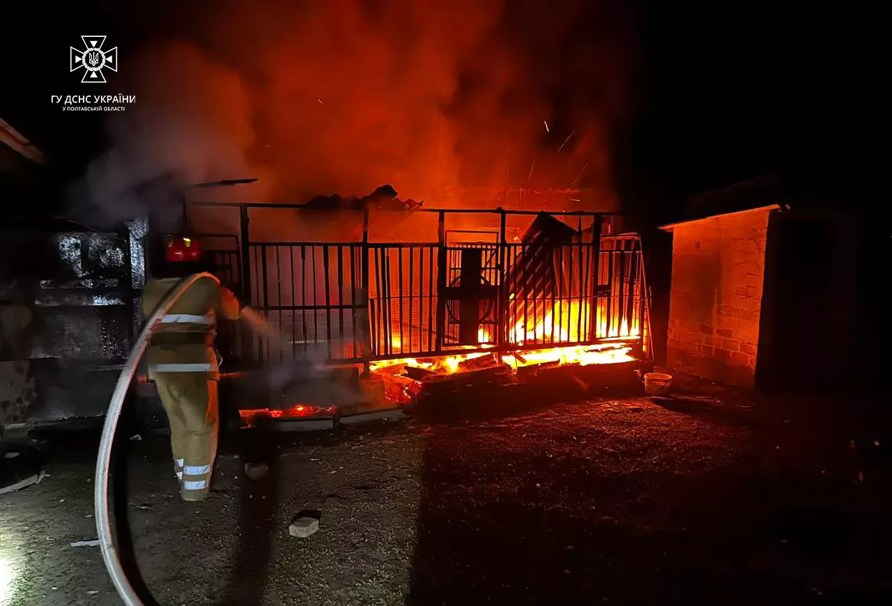 Друга пожежа сталася сьогодні, 12 травня, вночі о 2.05, у селі Оржиця, Лубенського району, на вулиці Набережній у приватній господарчій споруді.